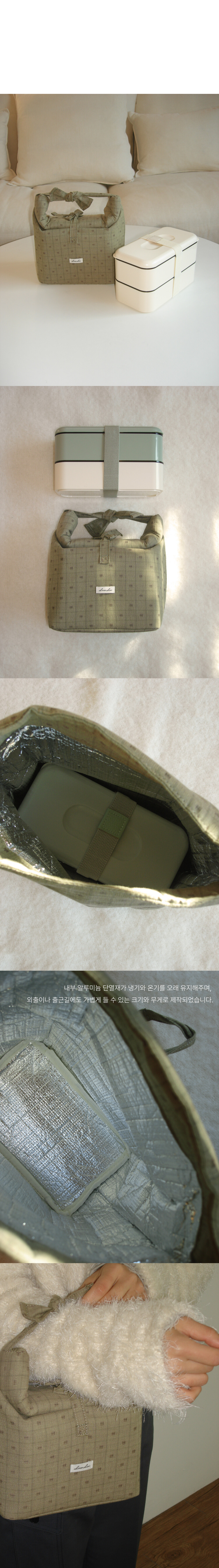 입구를 돌돌 말아 매듭으로 여미는 형태라, 도시락 높이에 크게 구애받지 않아 다양한 크기의 용기를 안정적으로 감싸줍니다.