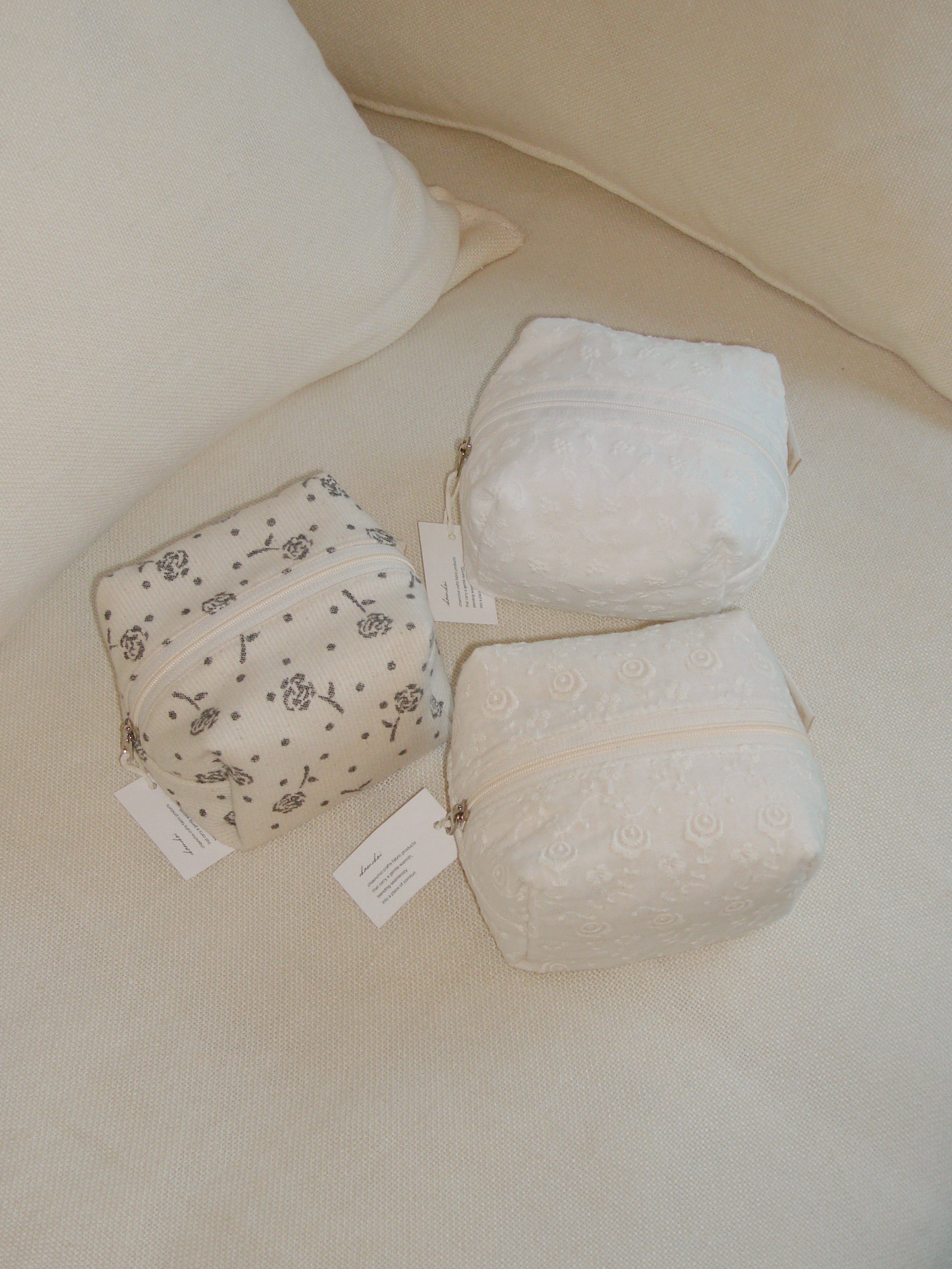입체적인 형태로 제작되어 수납력이 넉넉하고, 이 파우치 하나면 외출 준비가 든든해요.