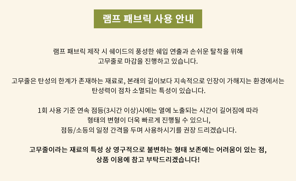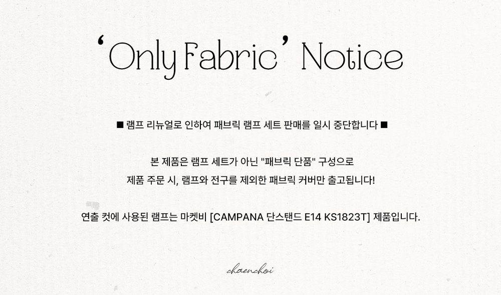 ◼ 램프 리뉴얼로 인하여 패브릭 램프 세트 판매를 일시 중단합니다.◼