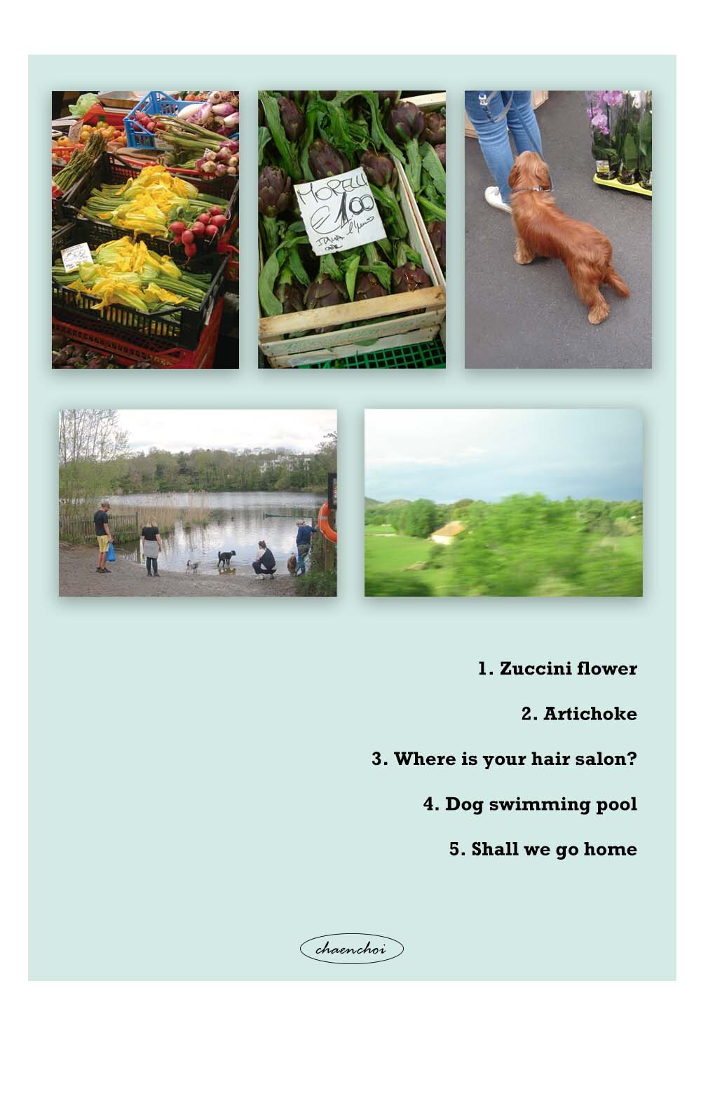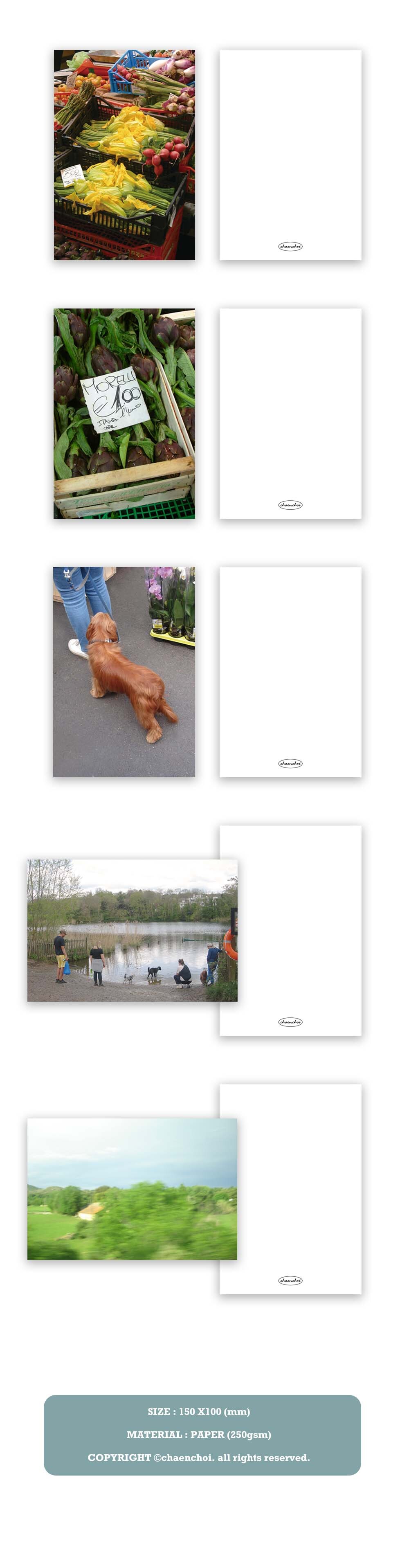 두 달의 챈초이 워크샵 동안 프랑스,영국,이탈리아를 여행하며 기록했던 순간의 장면을 담아 제작한 포스트 카드 입니다. 저희가 보고 느낀 크고 작은 아름다움과 따스함이 여러분과 여러분의 소중한 사람들께까지도 잘 전해지기를 바라요!