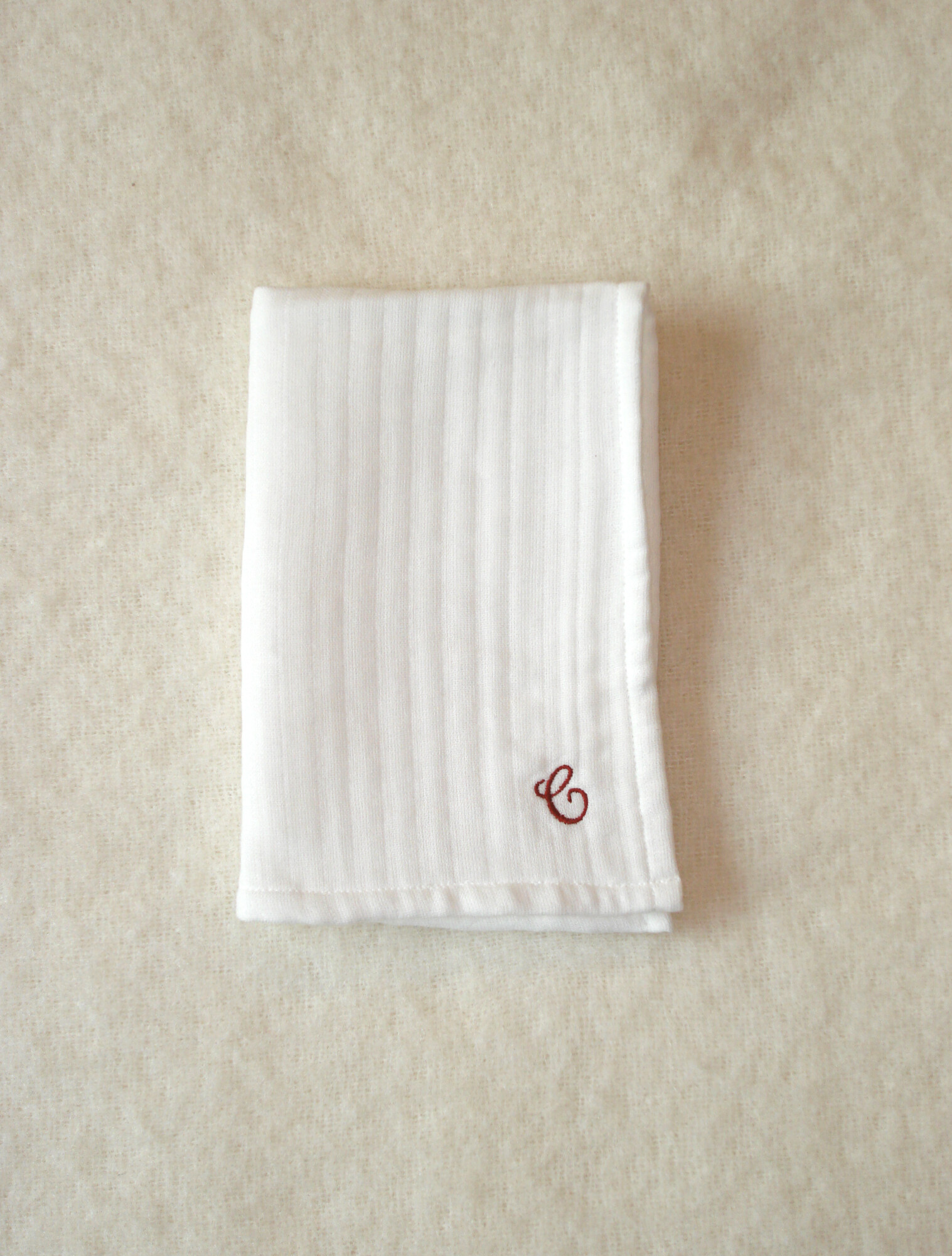한쪽 모서리에는 붉은 C 자수가 빈티지한 포인트가 되어줍니다.