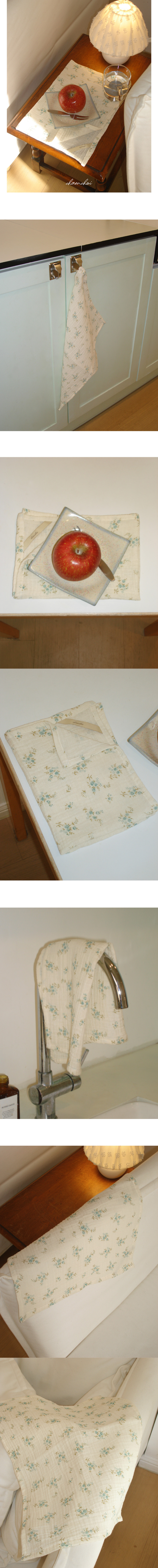 삶 속에서 두루두루 사용하기 좋은 키친 클로스예요. 주방에서 손의 물기를 닦거나 채소와 과일 밑에 깔아 물기를 제거하는 용도로 사용해도 좋고, 물기가 있는 식기류를 닦는 데에 혹은 테이블 매트로 사용하셔도 좋아요. 기분이 참 좋은 건 덤이랍니다 ⋰⭒