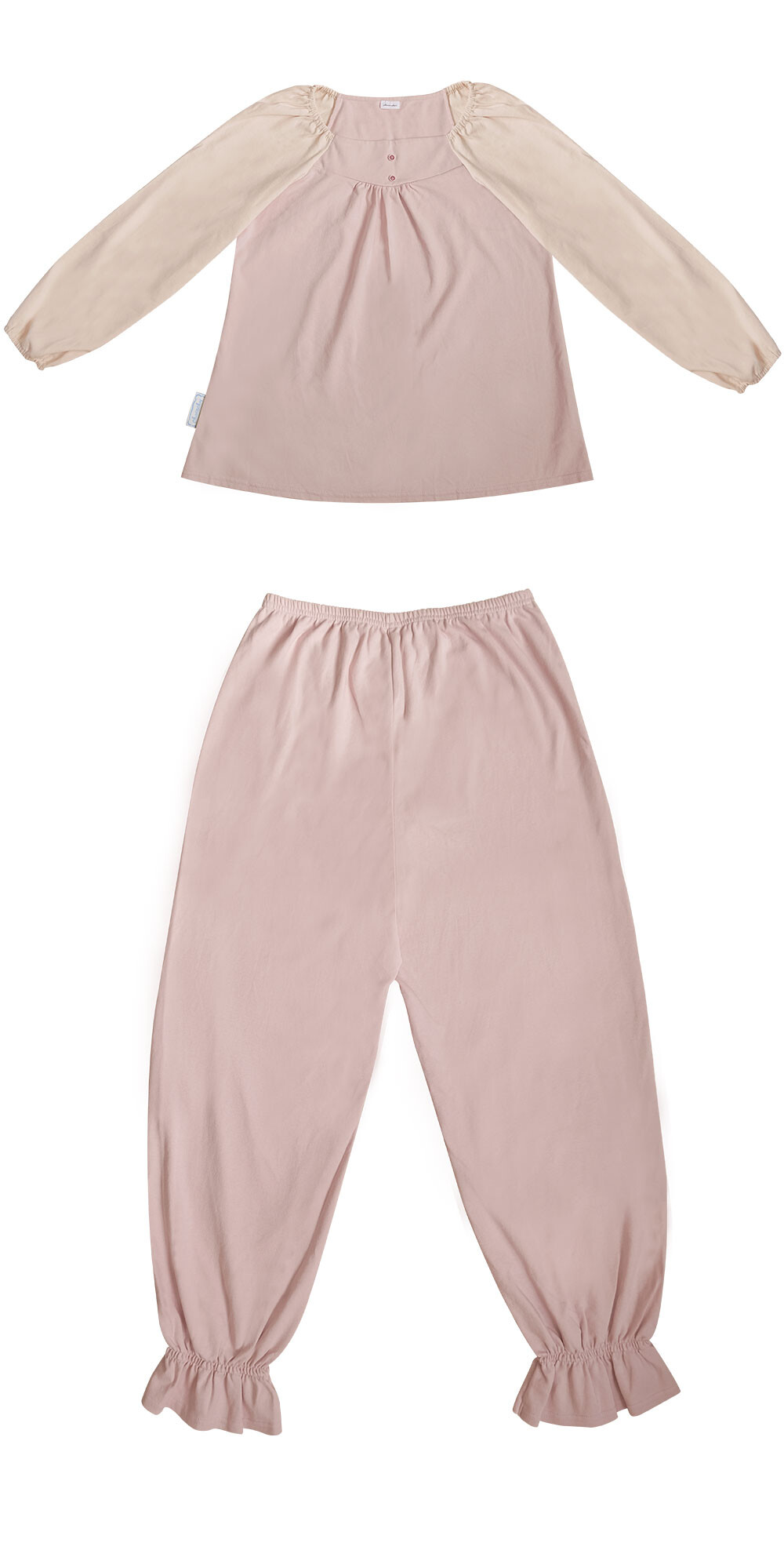 코지한 컬러감에 채도가 낮은 소매 배색이 포인트가 되는 파자마예요. 톡톡하고 보드라운 다이마루 원단으로 제작되어 정말 편안한 착용감과 터치감을 지닙니다. 잠옷을 입고 벗을 때에 편하게 착용될 수 있도록 넓은 스퀘어 네크라인으로 디자인 되었습니다. 소매를 올리고 세안을 하거나 화장실에서 바지단을 걷어야하는 경우에도 잠옷이 젖지 않도록 소매와 바지단에는 고무줄이 들어가있어요. 잠을 잘 때에는 고무줄이 조이지 않게끔 적당한 정도의 탄성을 테스트하여 불편함이 없도록 제작하였습니다. 150~170cm의 다양한 스펙에서도 너무 길거나 짧게 느껴지지 않도록 디자인하여 체형 구애없이 프리사이즈로 착용하기 좋은 아이템이에요. 편안하고 사랑스러운 잠옷을 입고 보내는 여러분의 아침과 밤이, 더욱 아늑하고 행복해지를 바라요-!
